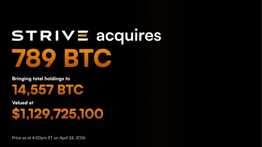 Strive Asset Management announced the purchase of 789 BTC worth approximately 61.43 million. The purchase price is $77,890 per coin. On Monday, CEO Matt Cole announced the update on X. The company is still devoted to a long-term buy and hold strategy, he said.